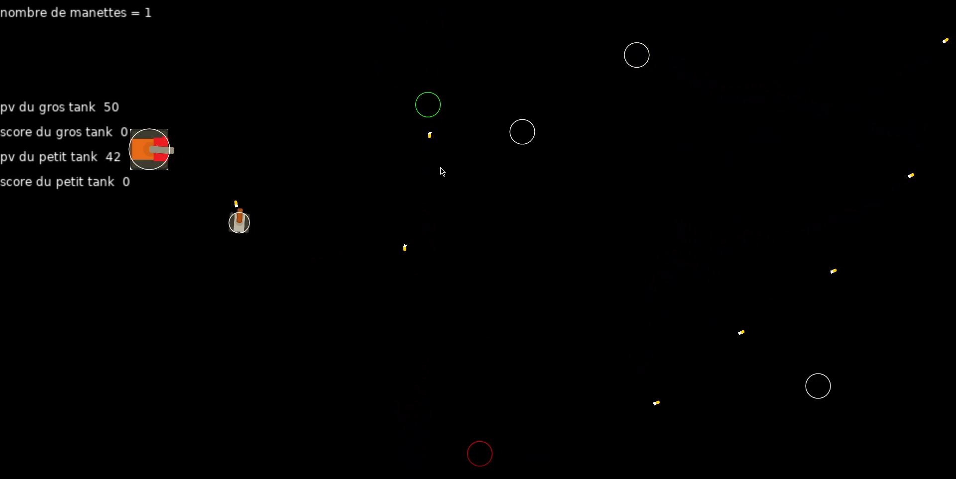 Le comportement des ennemis est géré par une simple machine à états. On peut également observer les différents bonus dans le jeu : bouclier, soin, tirs multiples, roquettes...